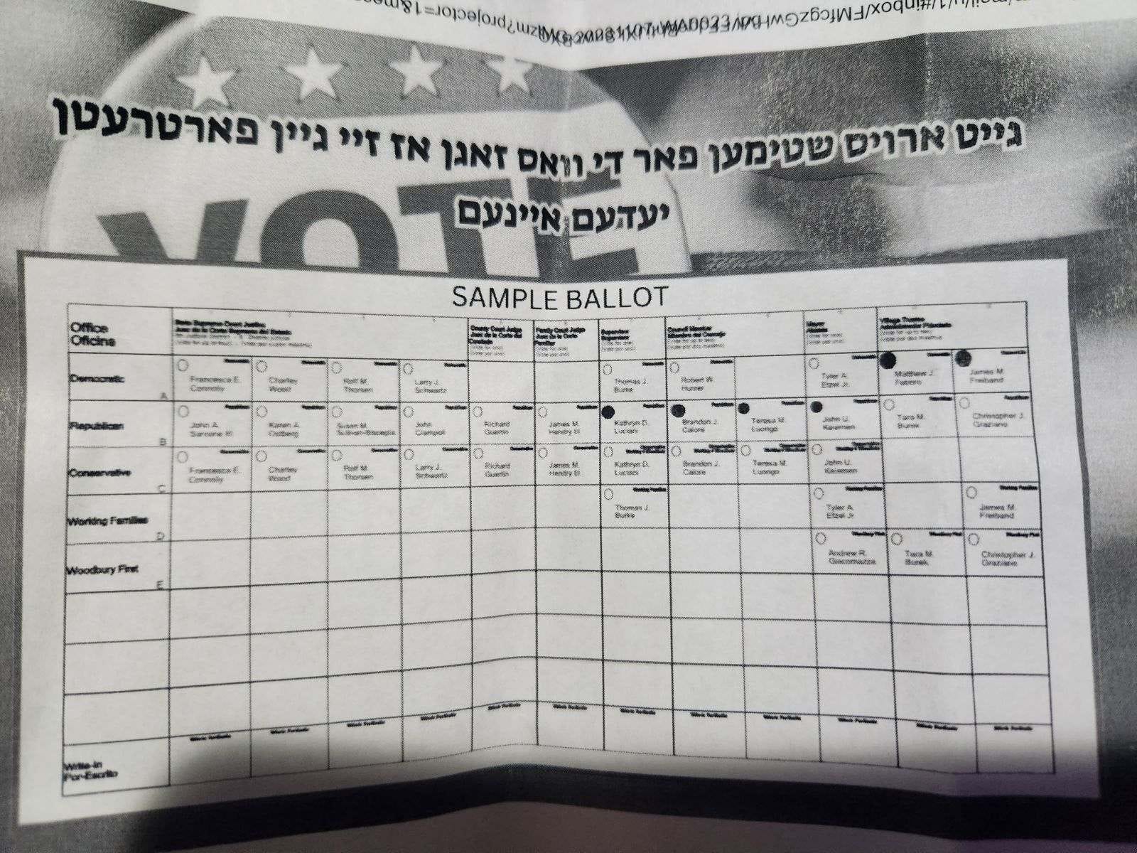 Above: A ballot handed out in the Fall 2023 Election showing hanhallah’s preferred candidates in Woodbury.