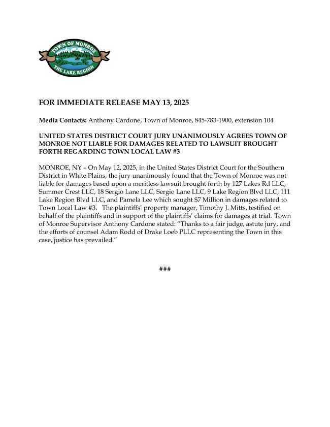 A short post about the end of a federal lawsuit against the Town of Monroe, filed by a convicted felon.