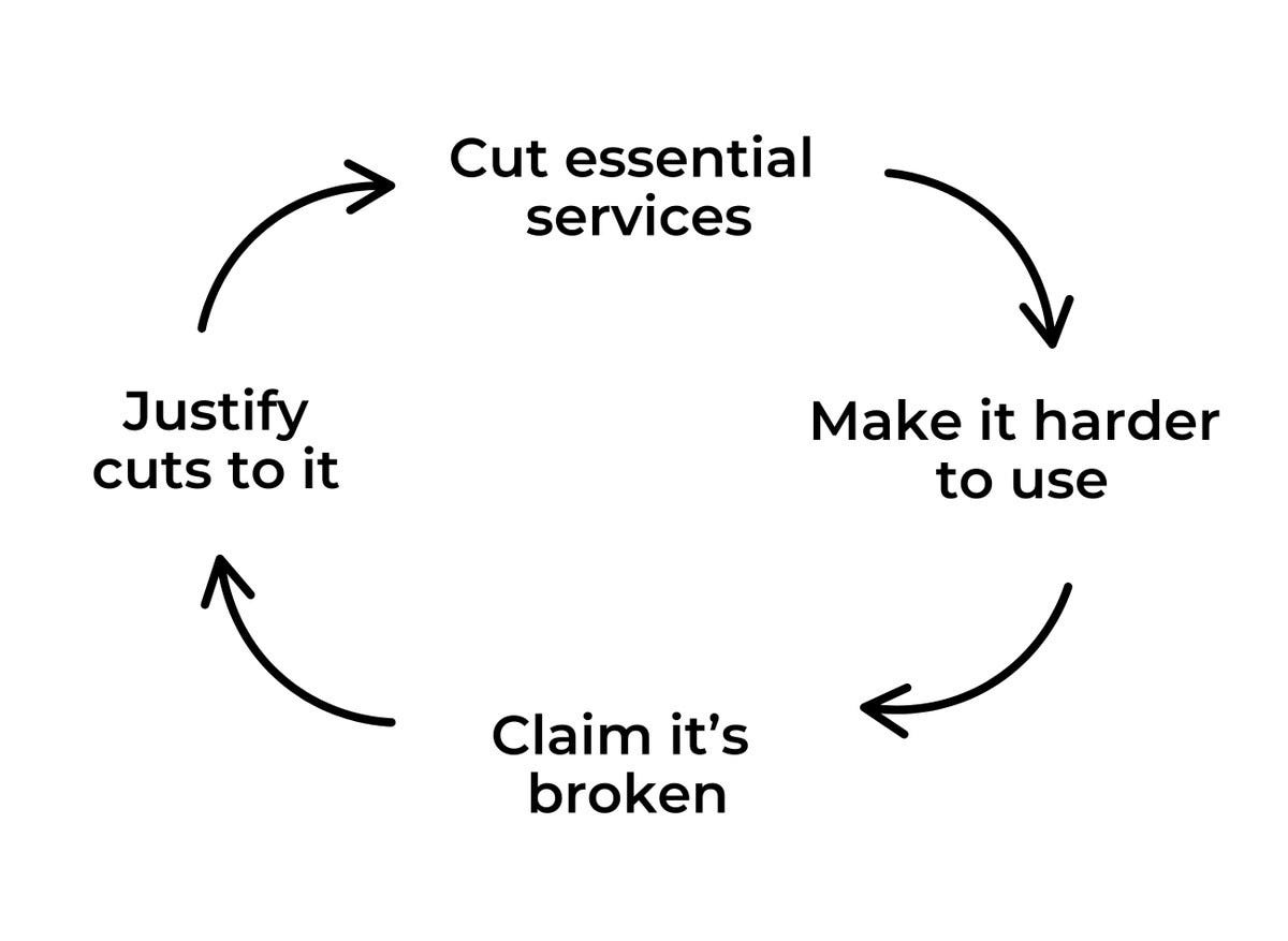 Meanwhile, a March 13th, 2025 leaked memo from Musk’s Acting Deputy SSA Commissioner, Doris Diaz, details a plan to further — and intentionally — break the Social Security Administration. In short, by making it difficult for Social Security recipients to get what they need, without going to an SSA Office. Offices which just so happen to be either shutting down or intentionally understaffed by President Musk.