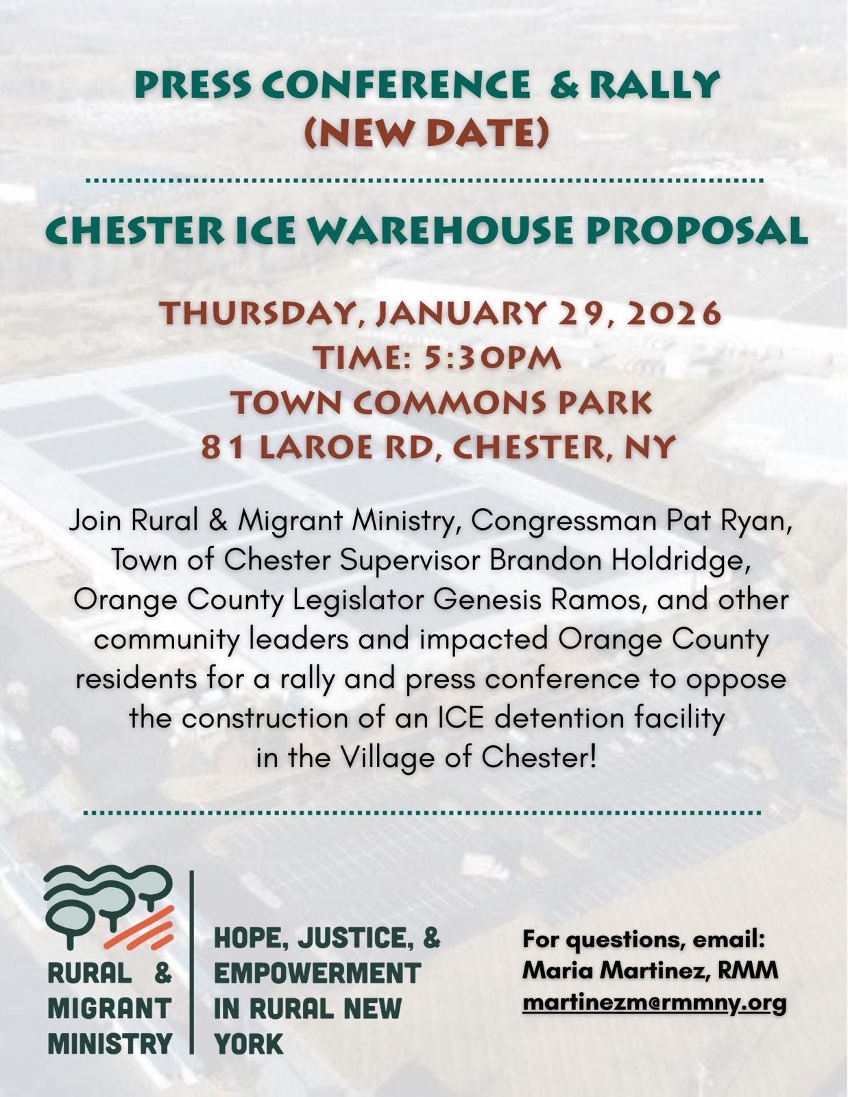 Orange County’s government is looking to pass a resolution voicing its opposition to the ICE concentration camp in Chester. On February 5, 2026, from 5:30 p.m. to 6:30 p.m., you can speak during public comment and voice your objections to the Chester concentration camp. I encourage you to be there at the government center on that day.