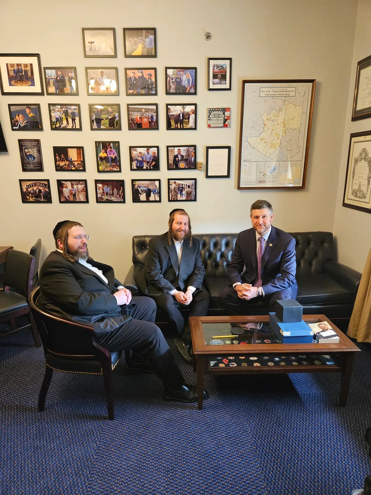 Above: Congressman Pat Ryan (right) with Isaac Ekstein (left) and Joel Stern (Far left.) Both Ekstein and Stern are at the center of numerous state and federal investigations right now. But we’re sure Pat Ryan is going to help get to the bottom of some of those, like the FAA and the helicopter issue, in no time. Right Pat?