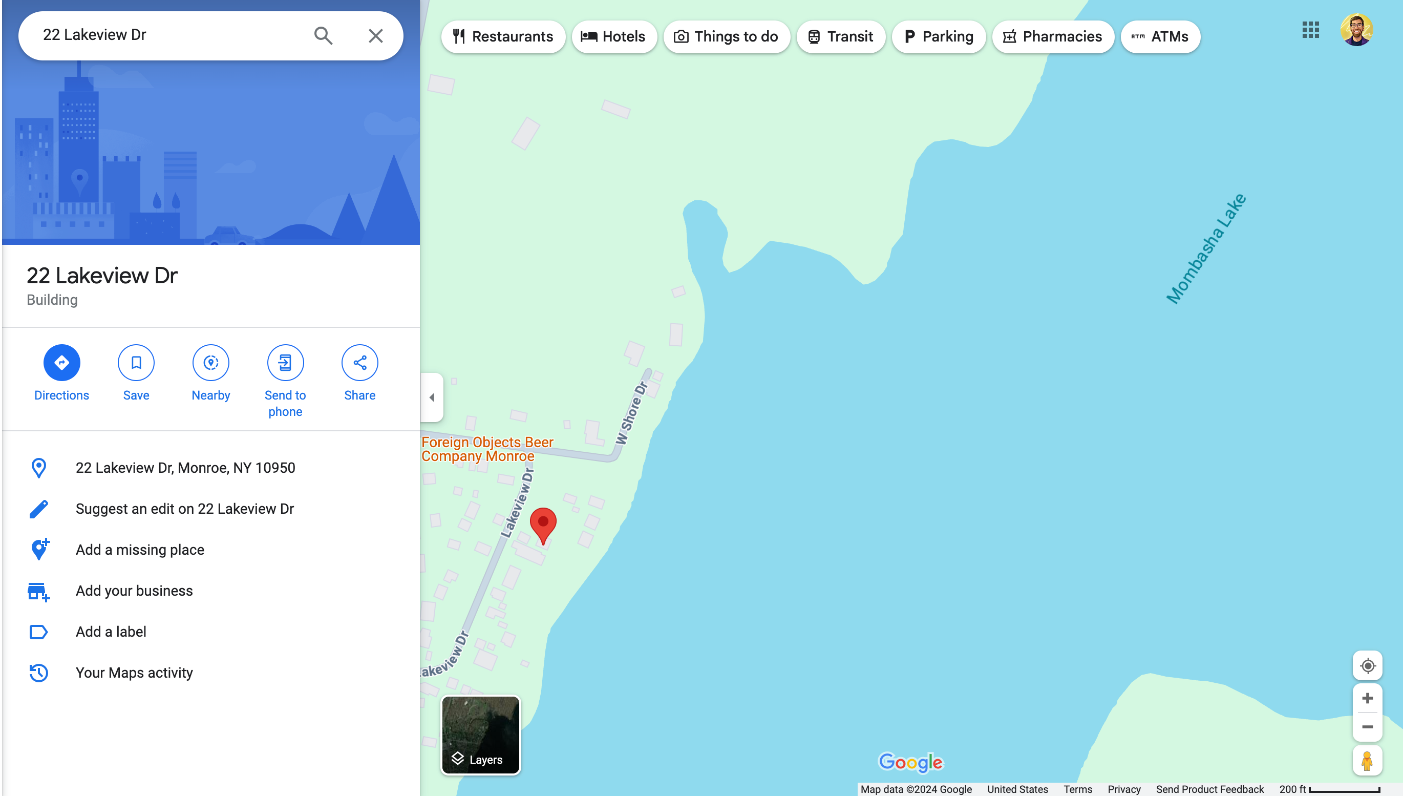 As you can see from Google Maps below, 22 Lakeview Drive is right near Mombasha Lake, which is the reservoir for the Village of Monroe. Over 20,000 people are provided water each day from Mombasha Lake, which is why the Village is trying so hard to protect this lake from the wealthy douchebags who want to continue to use it as their playground and a playground for short-term renters to enjoy.