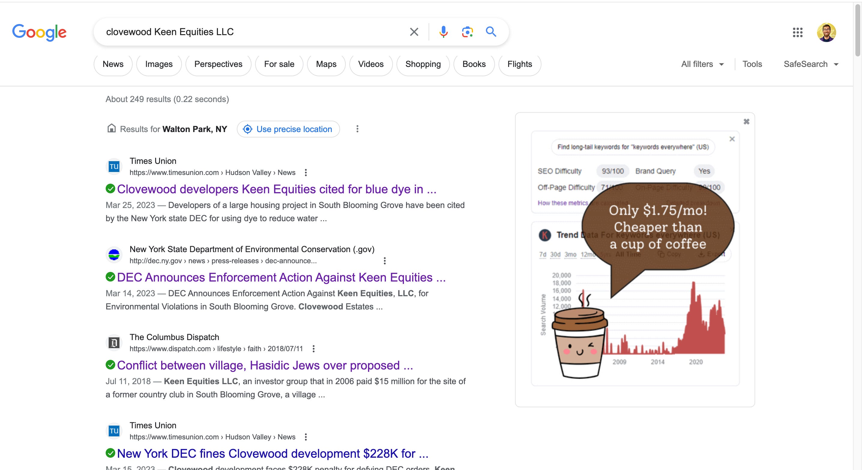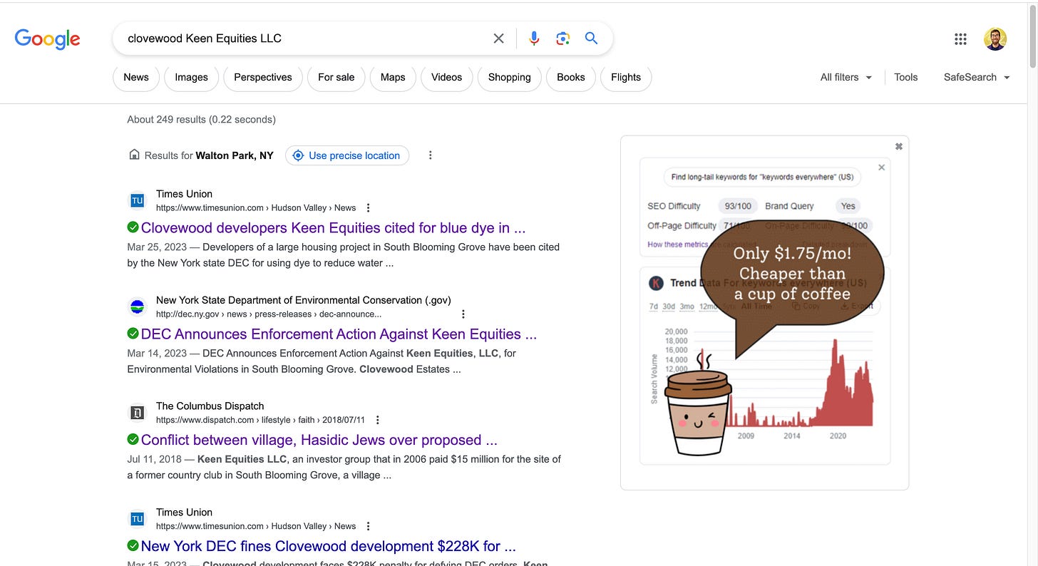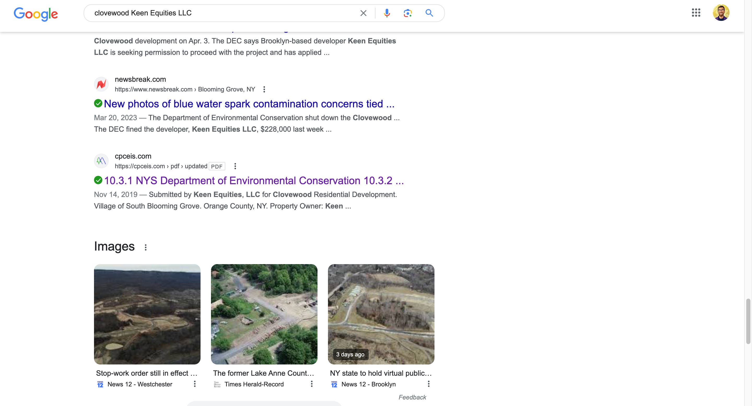 During my second check of the google search results, I found this posting from the DEC that has a different address listed for Keen Equities. And, unlike the bankruptcy filing, this page from the DEC is from 2023. So it’s recent.