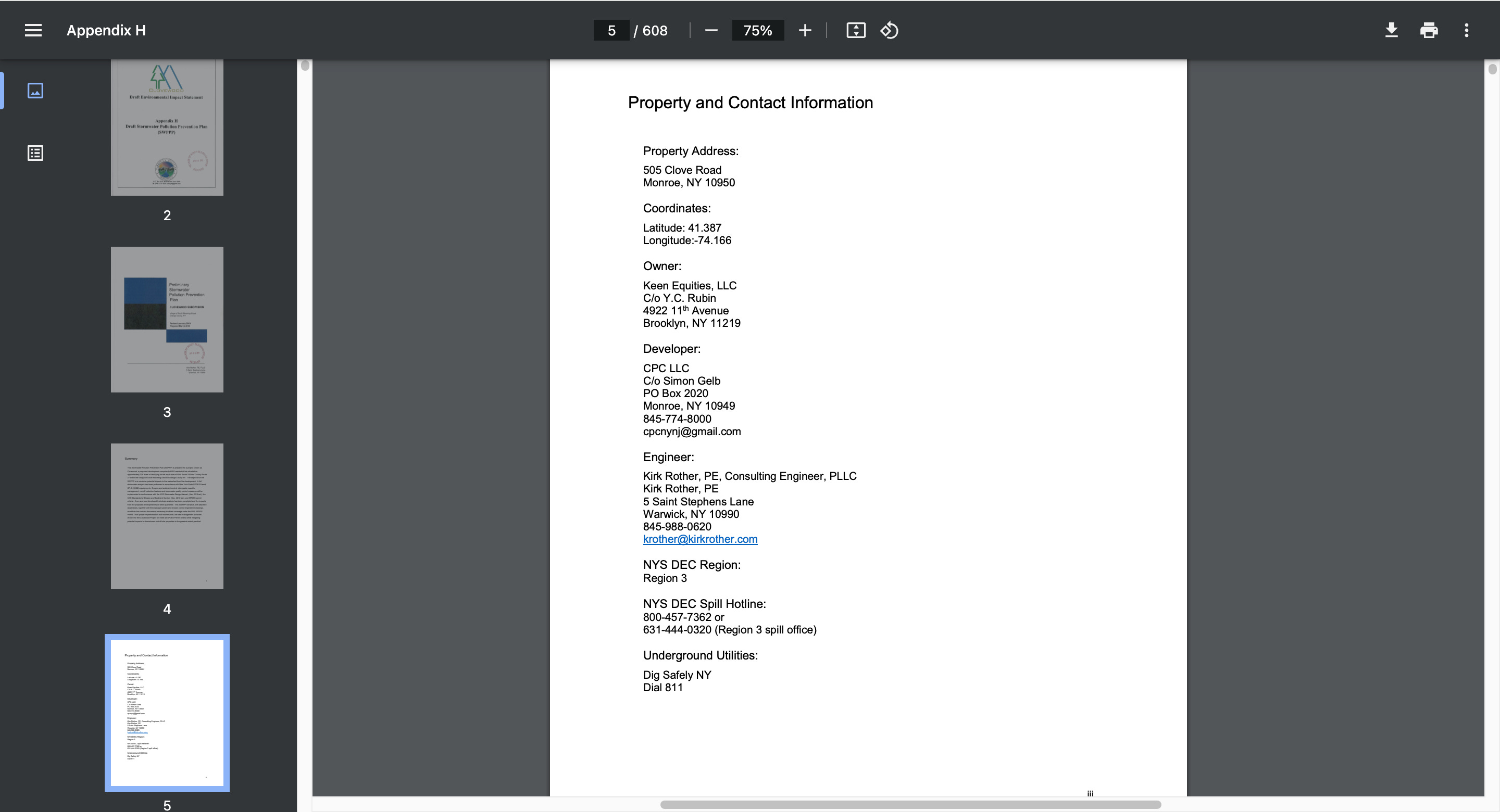 But it may take some digging on your local town website or googling the project name (in this case, Clovewood) and the name of the LLC. For example with the South Blooming Grove housing development, you can find the draft Environmental Impact Statement online here.