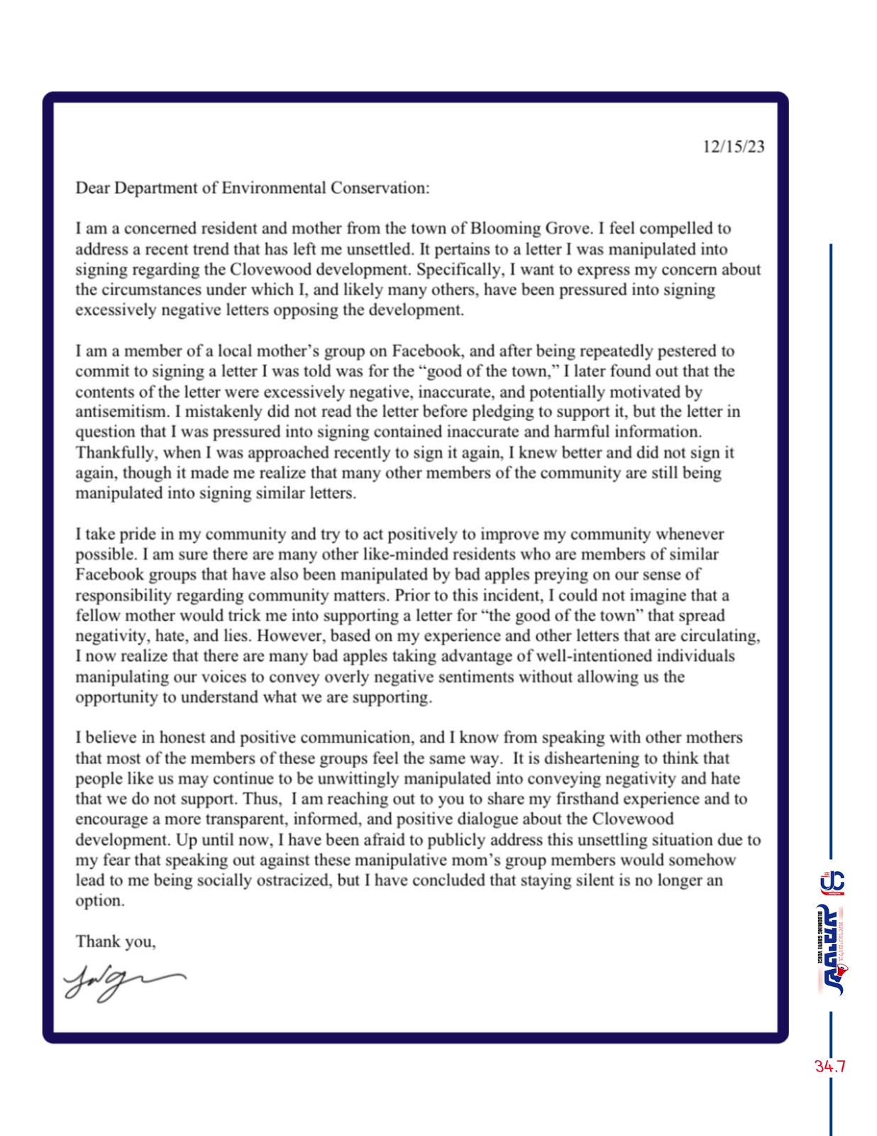 Below, you’ll find a copy of what Mr. Stern, and his fellow Village Employee / UJC member, Mr. Ekstein, are telling their friends to send to the DEC:
