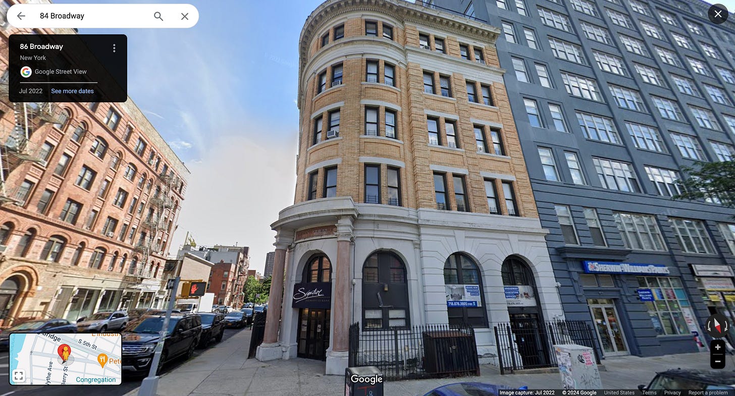 84 Broadway, Brooklyn, NY, 11249 is listed as the address for the Secretary of State to get in touch if there’s an action against Keen Equities LLC. There was a Signature Bank location here, and 25 apartments.