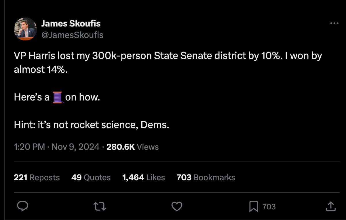First, in Skoufis’s announcement, he’s trying to do that thing a lot of corporate Democratic idiots are doing, where they think the secret to beating Trump is to move to the right.