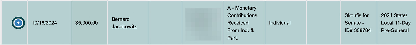 Worth noting: The real estate developer, Bernard Jacobowitz, who would directly benefit from that left turn lane donated $5,000 to Skoufis’s Skoufis for Senate Pac just prior to this year’s election.