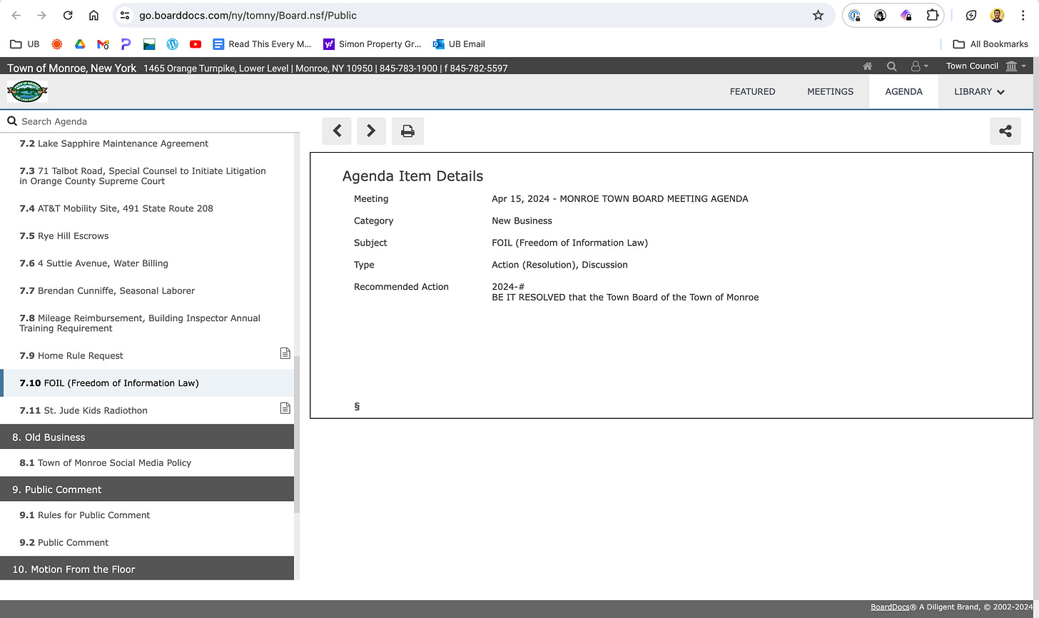 Of course, once you tell the Town of Monroe that, they simply stop responding to you, which is not how the FOIL law works.