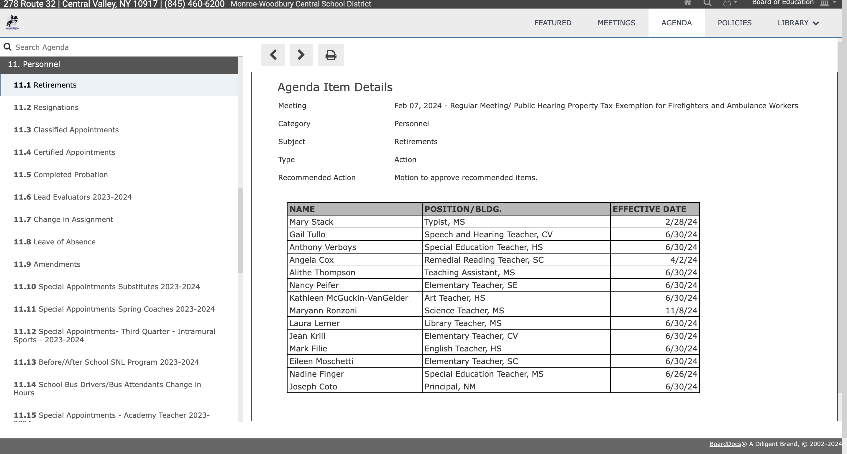 Monroe-Woodbury School District News from the February 7th Board Meeting.