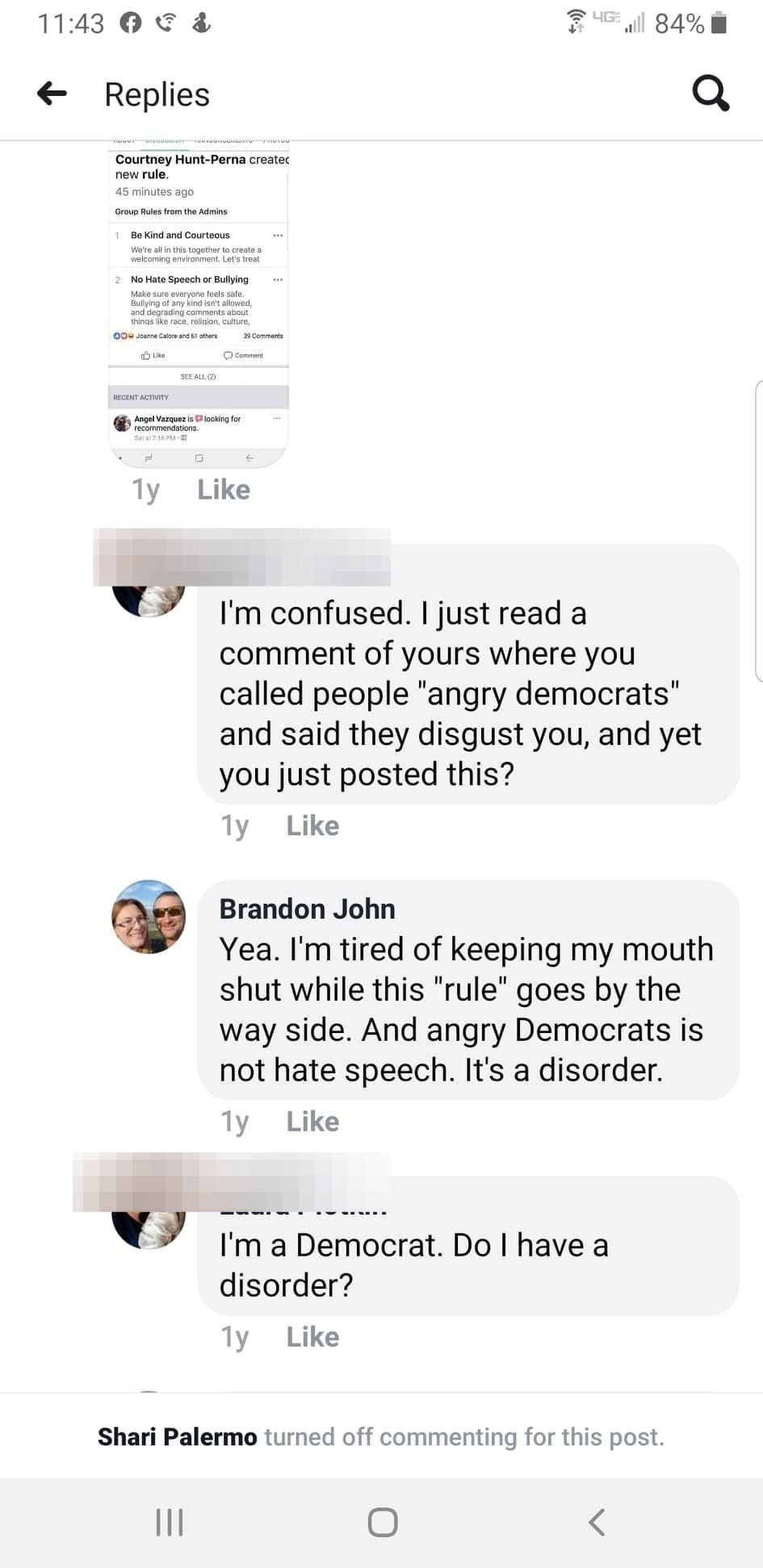 3. Finally, this isn't the first time a local elected official — or someone aspiring to local elected office as Mr. Maderia is in South Blooming Grove — has outed themselves as a member of Team Coup. In fact, we just need to look over to the Village of Woodbury and its new mayoral candidate, Brandon Caore, for another recent example. Wherein the local bigot described being a Democrat as a disorder. (Below he’s posting under the name of Brandon John.)