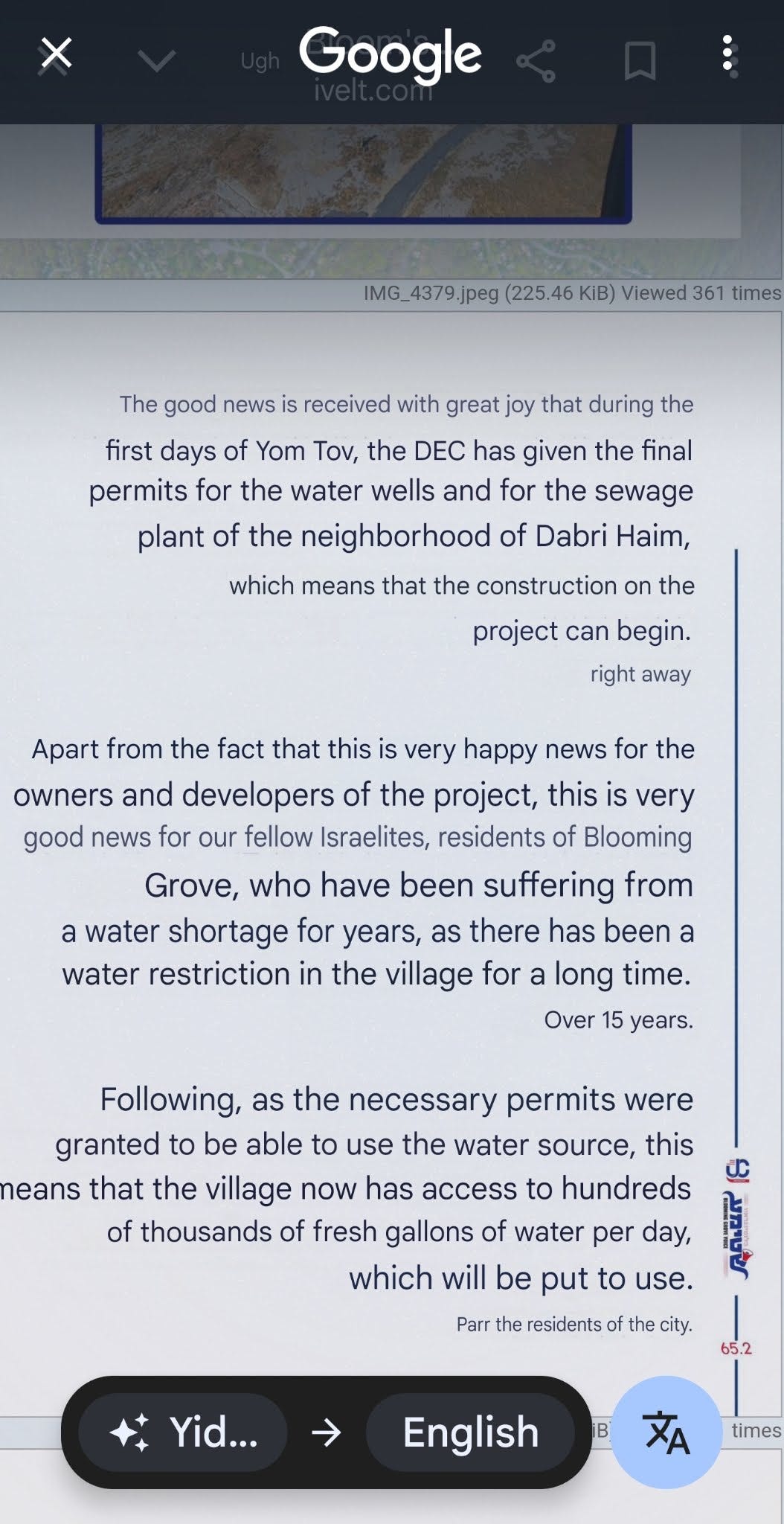 Mosayonu Grove LLC (Bernard Jacobowitz) has proposed gifting a well on its proposed development to the Village of South Blooming Grove. That was the well the accountant at the Budget Workshop was referring to when he spoke to "management" (Joel Stern, Isaac Ekstein) that would "solve" the Village's water problem.