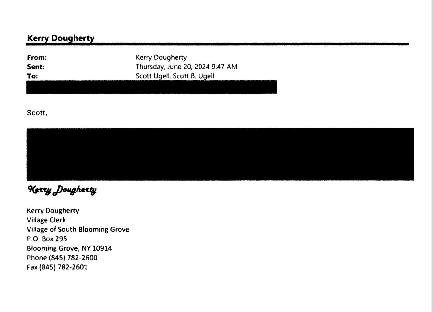 On October 26th, 2021, the last email about the terms of office change was sent. The Village of South Blooming Grove inappropriately (of course) blacked out the following as part of The Monroe Gazette’s FOIL request. We are currently appealing this.