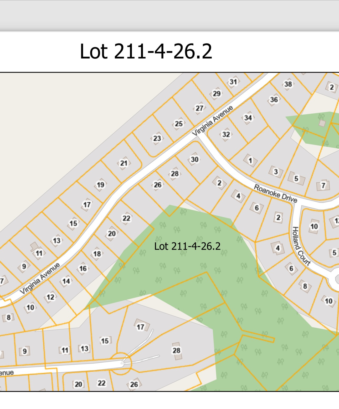 26 Virginia Avenue backs up into the green space. 1 Roanoke Drive is across the street from the green space, but wants to place a parking lot behind 2 Roanoke Drive.