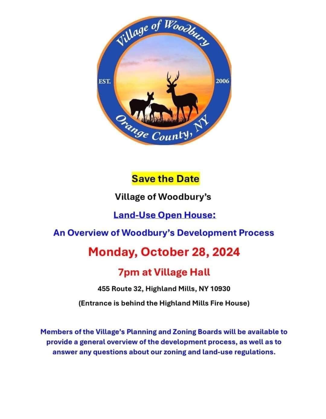 Woodbury Planning Board Land-Use Open House - 7 pm at 455 Route 32, Highland Mills (entrance behind the Firehouse)