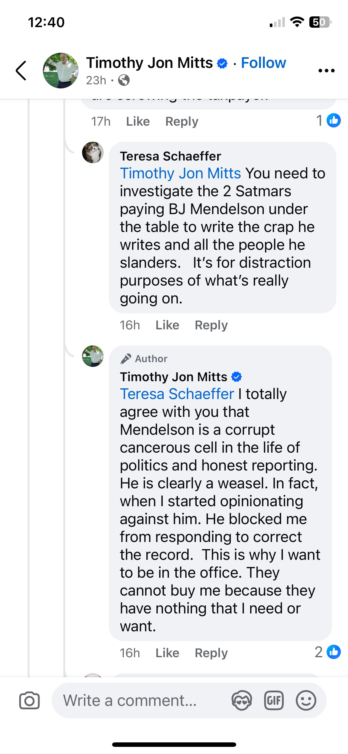 Now, before we get to Convicted Felon Tim Mitts, I have to briefly discuss Mrs. Teresa Schaeffer’s comment, which I think the following screenshot does succinctly: