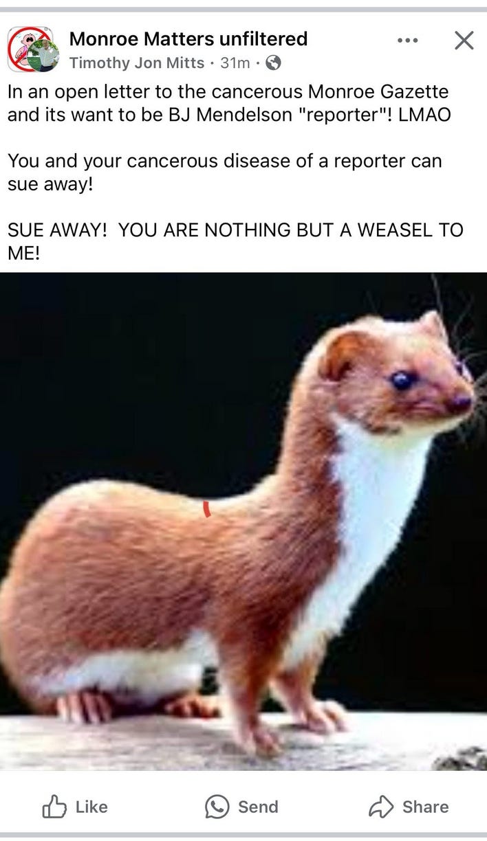 If you’re a subscriber, you can join The Monroe Gazette Facebook Group here.
