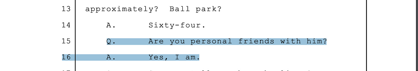 (Don't worry about Mrs. Schaeffer. Everyone knows her husband is Wayne Corts's business partner. Mr. Shaeffer testified to this fact in court.)
