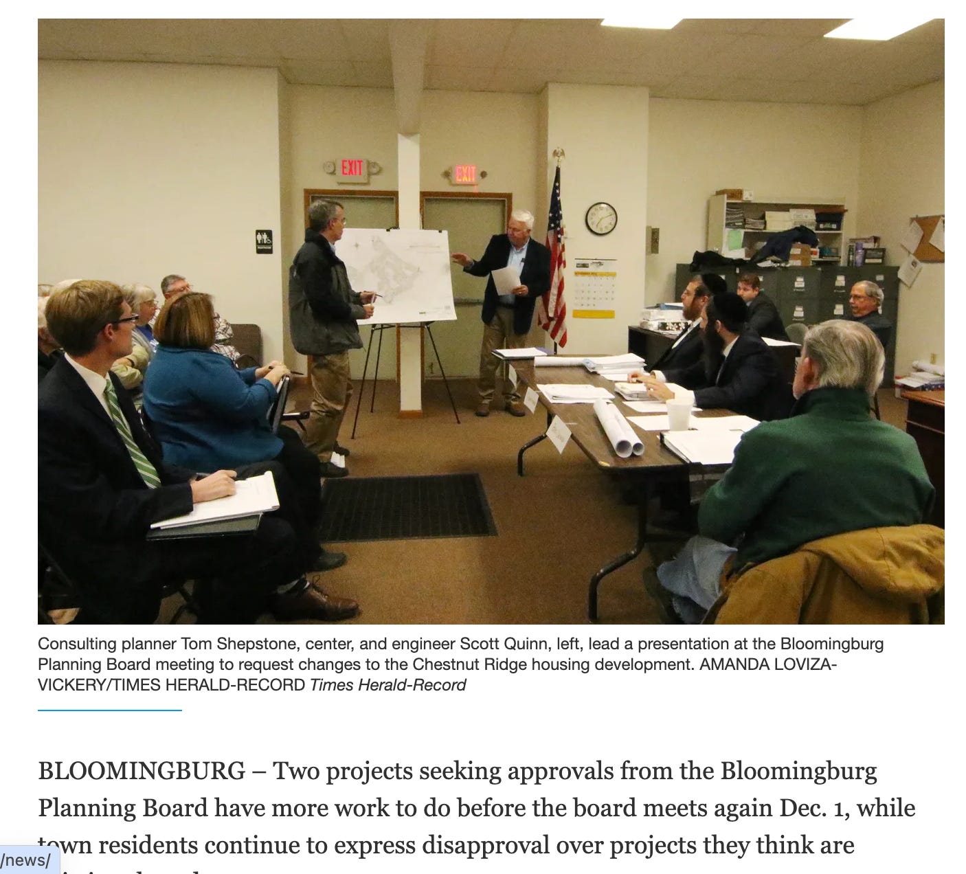 You’ll note that, according to The Blooming Grove Report, the CDRC is approving projects, even though ALL projects, not just some requiring subdivision, are supposed to go through The Planning Board and the Village Board for approval. (Shepstone is pictured on the far left in the picture below.)