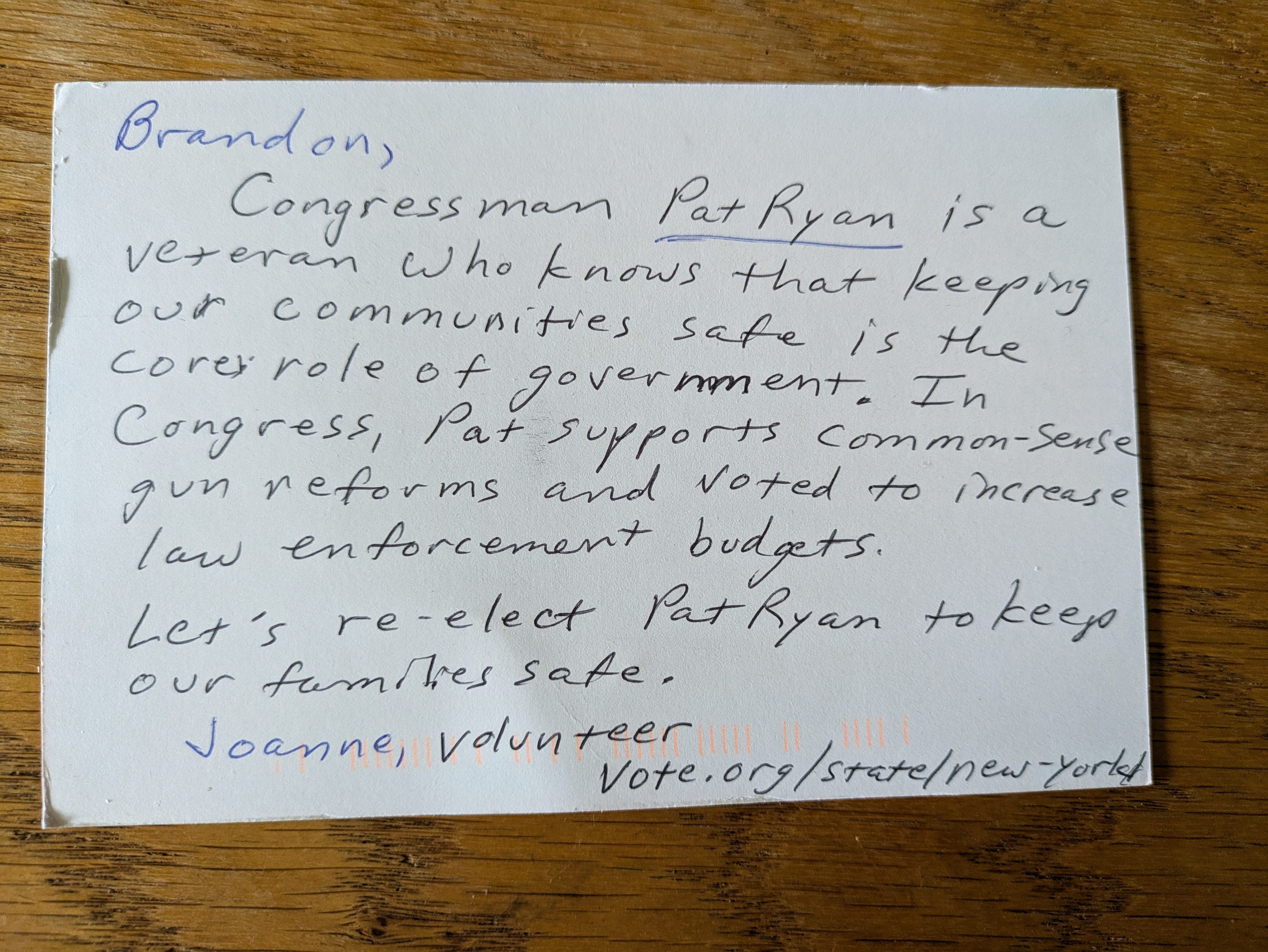 A post card received in The Monroe Gazette’s PO BOX from a volunteer for Congressman Ryan.