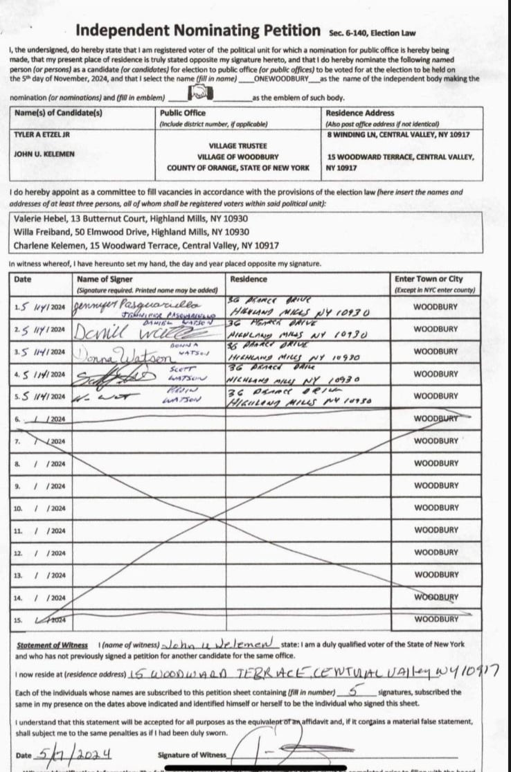 As mentioned, these two individuals— along with Trustee James Freiband — are attempting to take over the Woodbury Village Board this Fall.