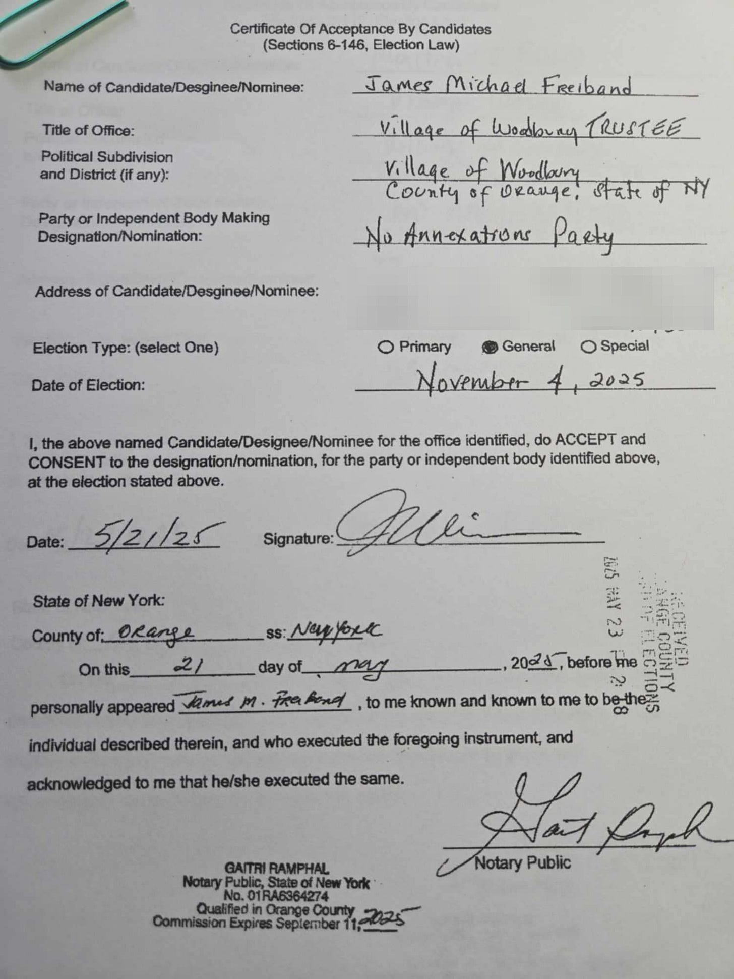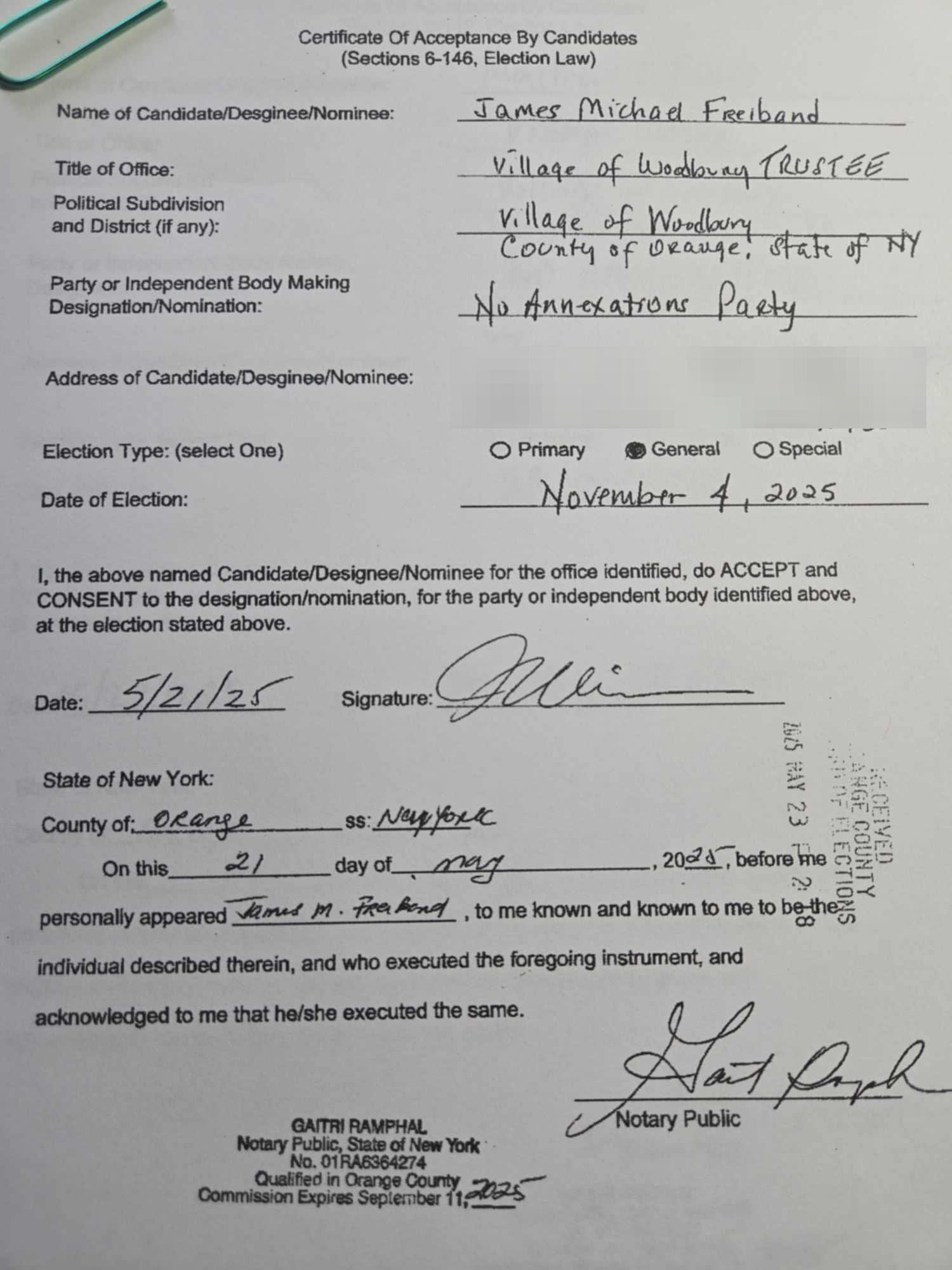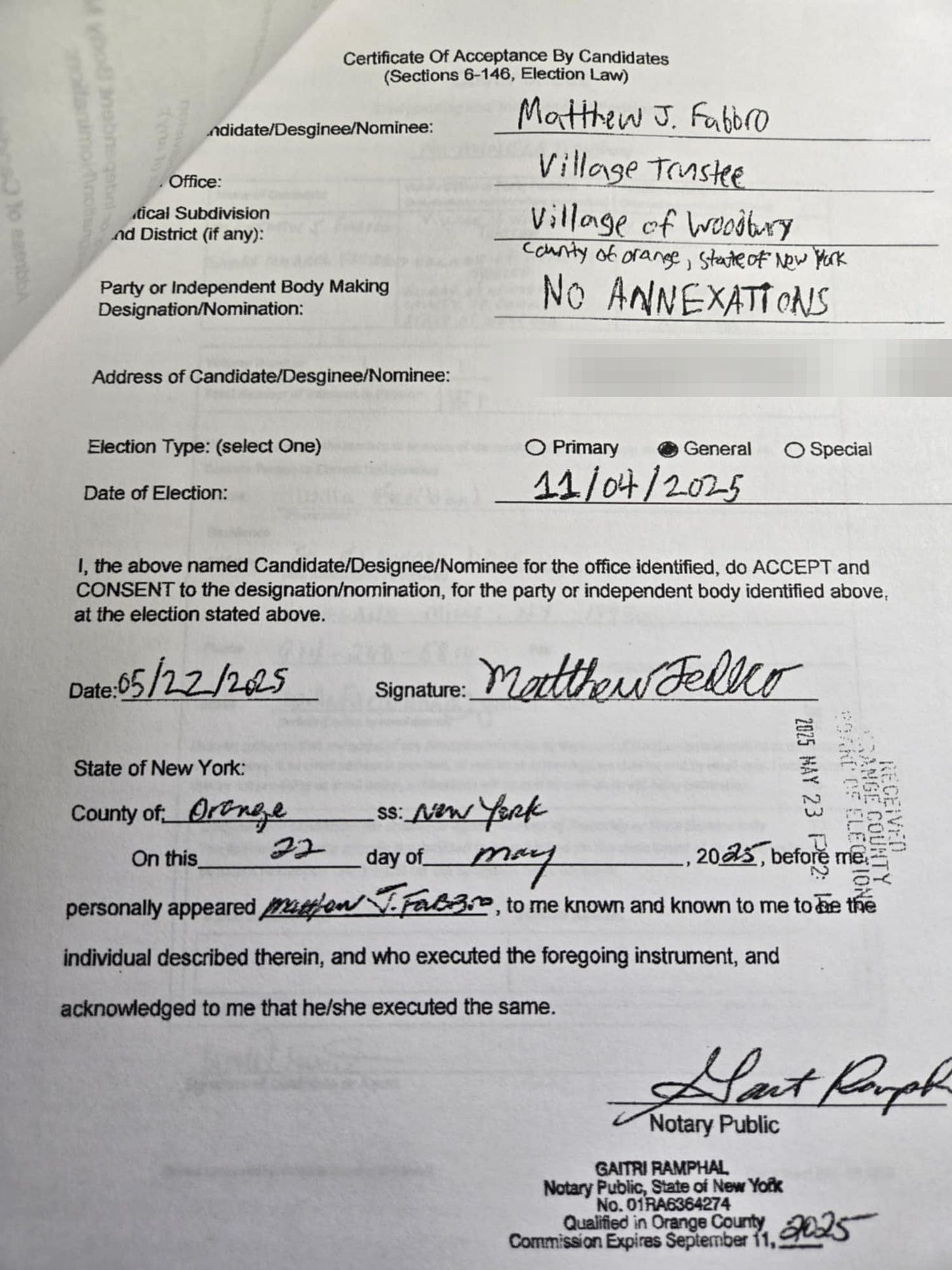 Basically, the latest Committee to Elect Woodbury Democrats Con Job is to get on the ballot this Fall with a third-party line called “No Annexation.” However, both Mr. Freiband and Mr. Fabbro appear confused by the name. Trustee Freiband called it “No Annexation Party” and Matthew Fabbro called it “No Annexations.” David Yoffee, running for a spot on the Woodbury Town Board, also called it “No Annexations.”