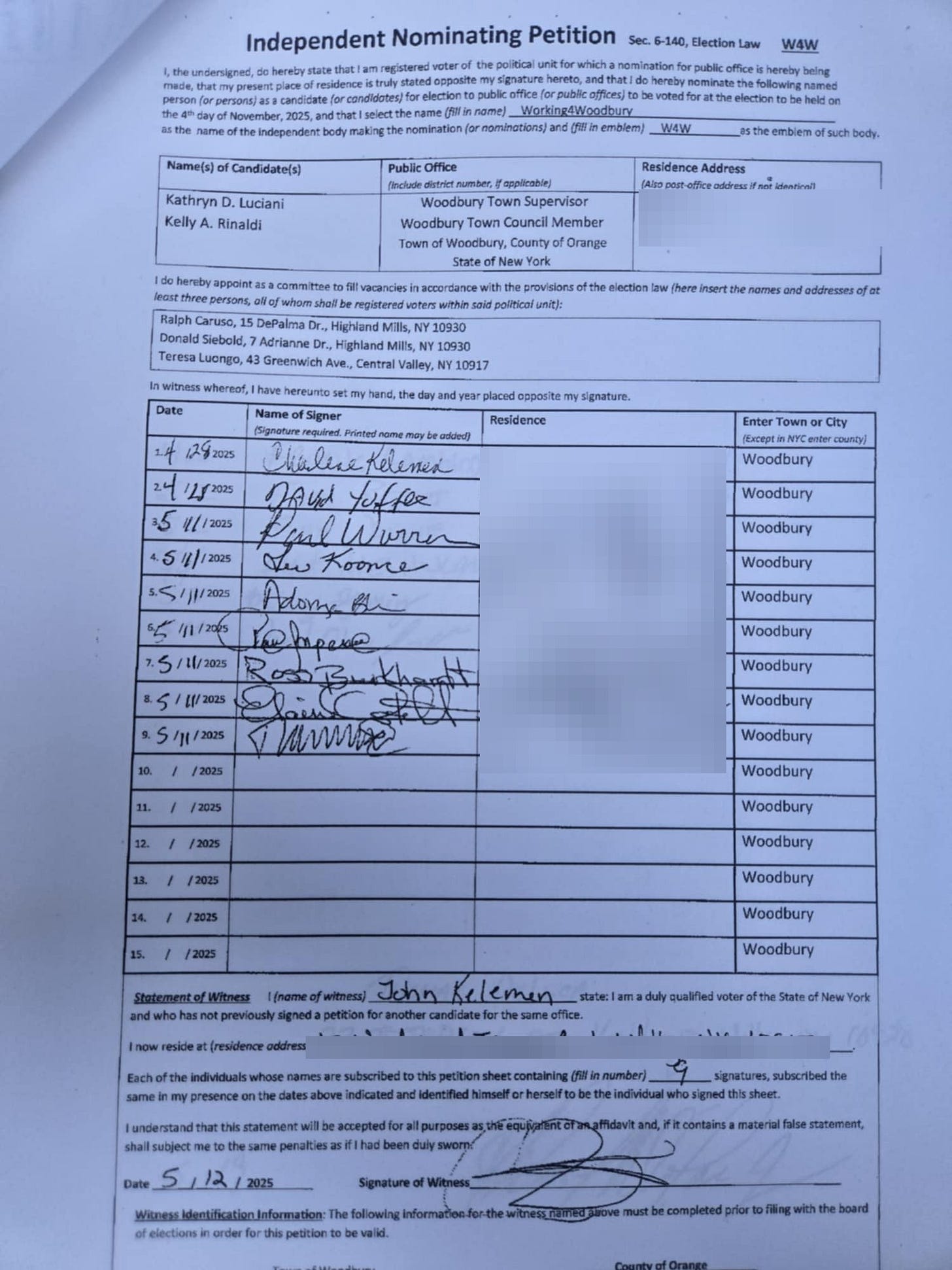 Look closely, and you can see in the picture above that John U. Keleman’s wife, and David Yoffe, the Democratic candidate for Town Board, signed the third-party petition for Rinaldi and Luciani.